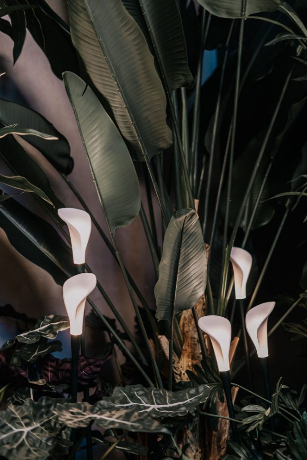The design of Bloom is a dance of fluid, organic forms that blend harmoniously with the surrounding nature. Each lamp, intended to be used in groups, becomes an integral part of the landscape, creating a dynamic and scenic atmosphere both day and night. Its lines evoke the grace of a flower blooming, and much like a calla gently swaying in the wind, Bloom enhances any space with elegance and poetry.