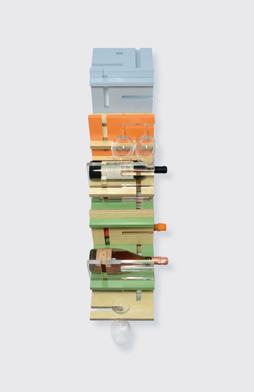IE is a modular easy to transform and assemble wall system. IE has been designed to be economical, easy to assemble without the use of any screws and tools and that can store/display a wide range of items. Since it is based on only one special cut IE module, it is cost effective to produce. It is intended to be a very affordable design piece of furniture anyone can own.