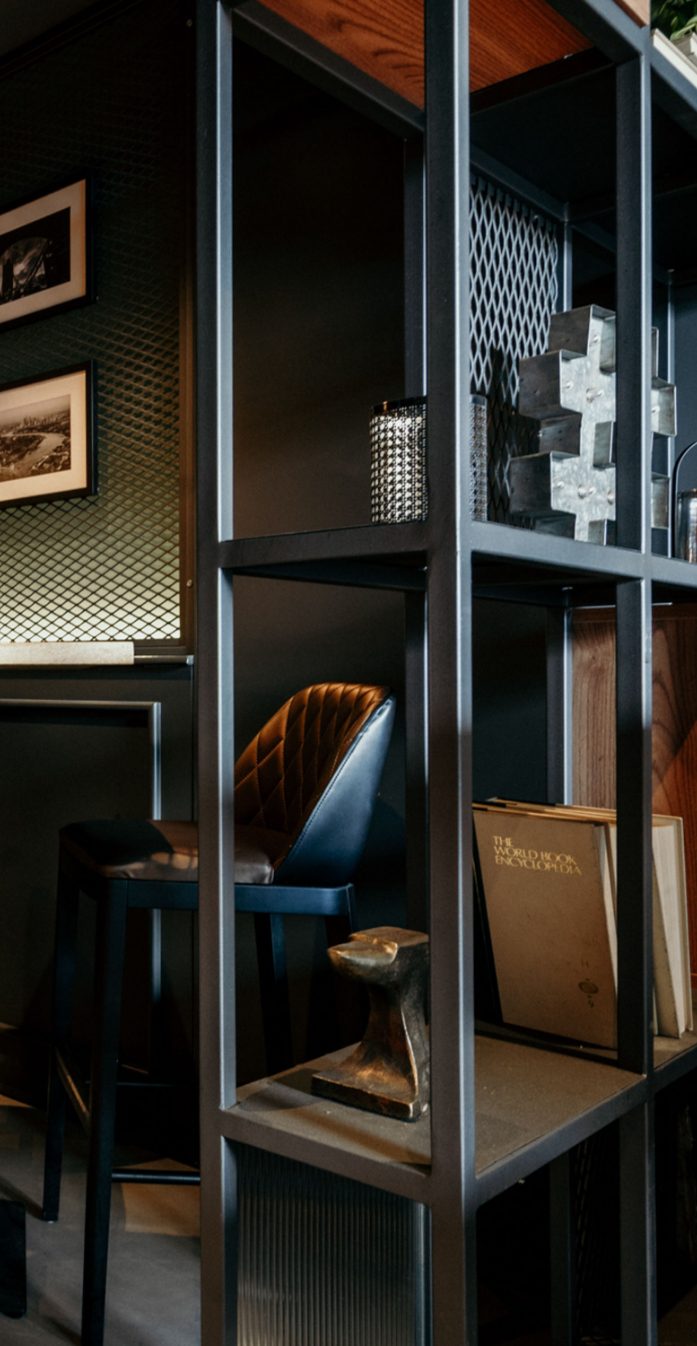 Open metal libraries were used to create zones, while retaining the open plan. The design features the use of raw materials such as the exposed concrete columns, the gun-sprayed metal for the libraries, and the typical red brick commonly used in construction in London. The industrial style of the design was contrasted with a dark colour palette, modern lighting elements and soft-touch materials such as light wood, fabrics, and leather. The combination of such materials led to a well-balanced space which infused the classic pub with a warm modern space where people socialise. Due consideration was given to today’s social media generation whereby an area in the bathroom was specifically designed as a selfie spot which contributes to free promotion for the pub.
