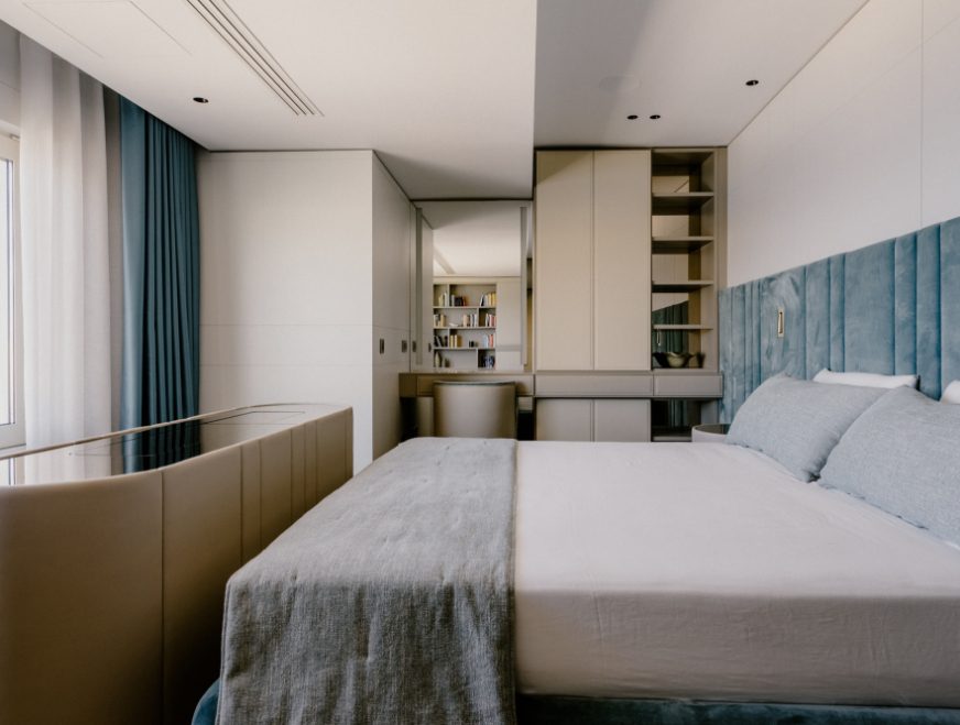 Every inch of this apartment has been meticulously curated in collaboration with the finest Italian artisans. Only the highest quality materials have been employed, including real leathers for upholstered wardrobe doors and panels. This careful selection ensures not only a visually stunning space but also one that exudes timeless style, quality and durability.