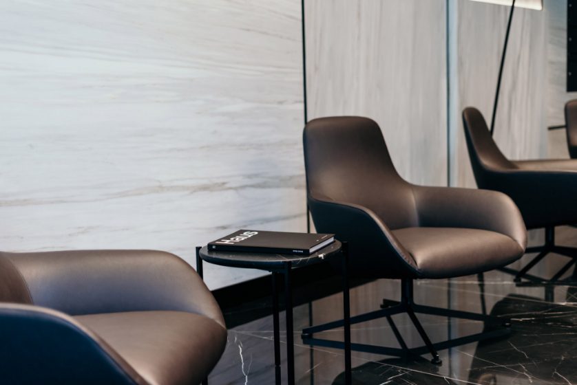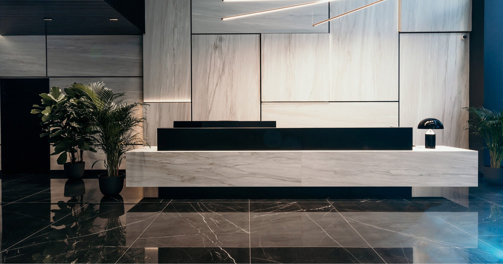 The grand reception entrance, marked by a double-height glass facade, establishes a bold first impression. The interior’s soaring ceilings and sophisticated materials enhance the sense of openness and luxury. The soon-to-open rooftop venue (April 2024) will offer panoramic views of Mercury Tower, further elevating the building’s prestige.