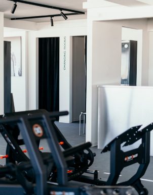 Focused on the latest machinery in the industry, the gym’s layout ensures that equipment is the centerpiece. The minimalist approach minimizes distractions, allowing members to concentrate on their workouts. Strategic floor signage throughout the gym clearly indicates different workout zones, facilitating efficient navigation and use of the space. Overall, the design is a testament to modern simplicity and functionality, providing an elegant and efficient workout environment for its members.